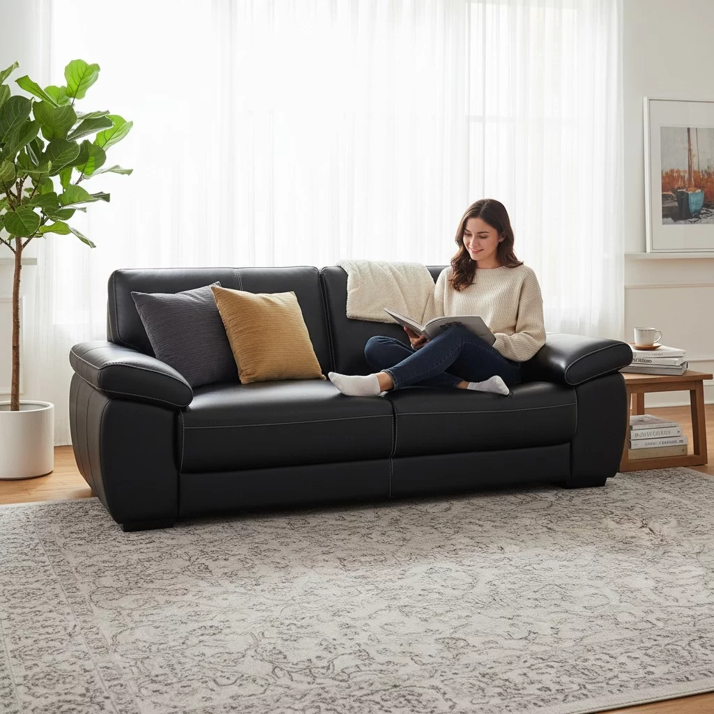 Milo- sohvan istuinosa on täytetty laadukkaalla vaahtomuovilla, joka tarjoaa erinomaisen istuttavuuden. Verhoilussa on käytetty paksua ja laadukasta läpivärjättyä nahkaa.