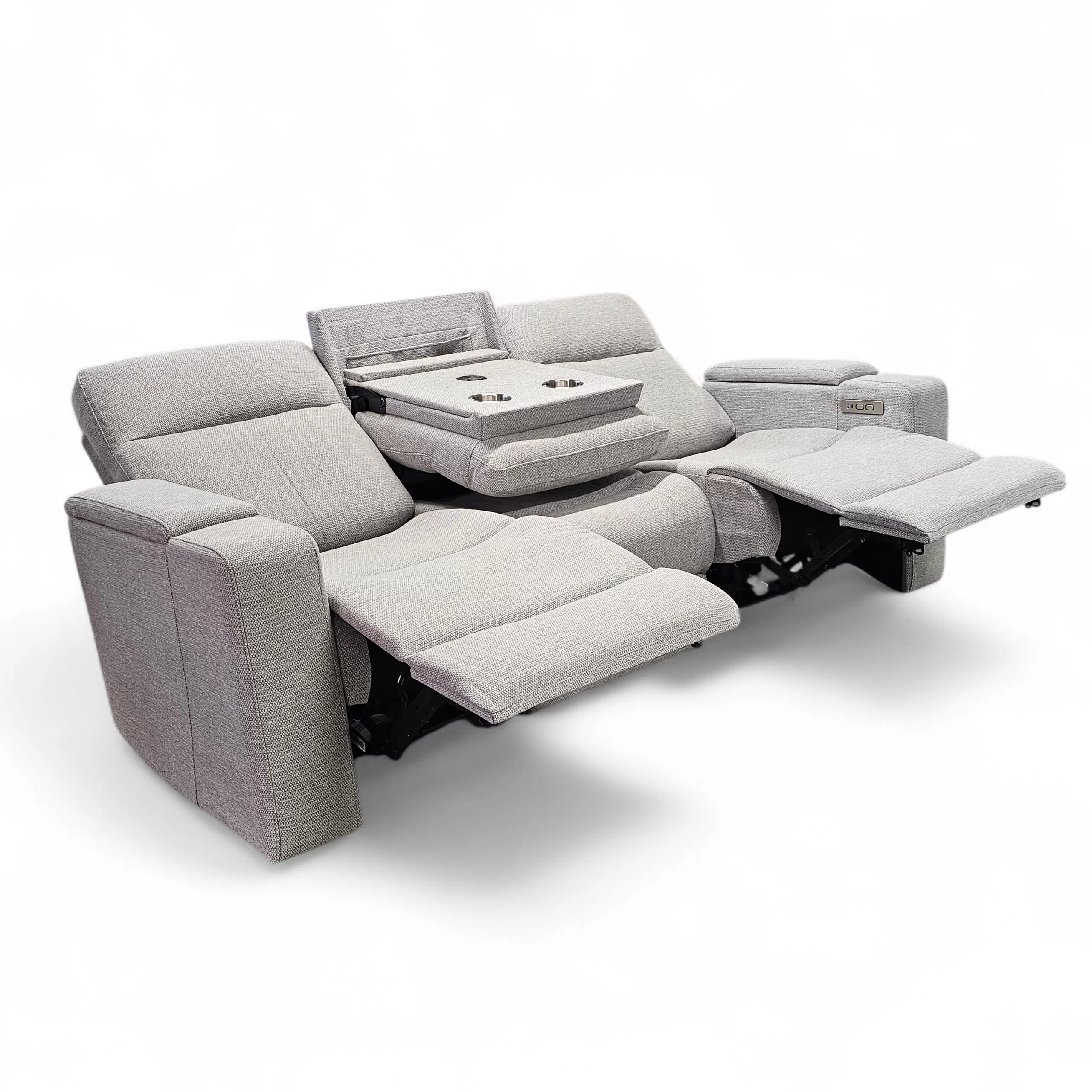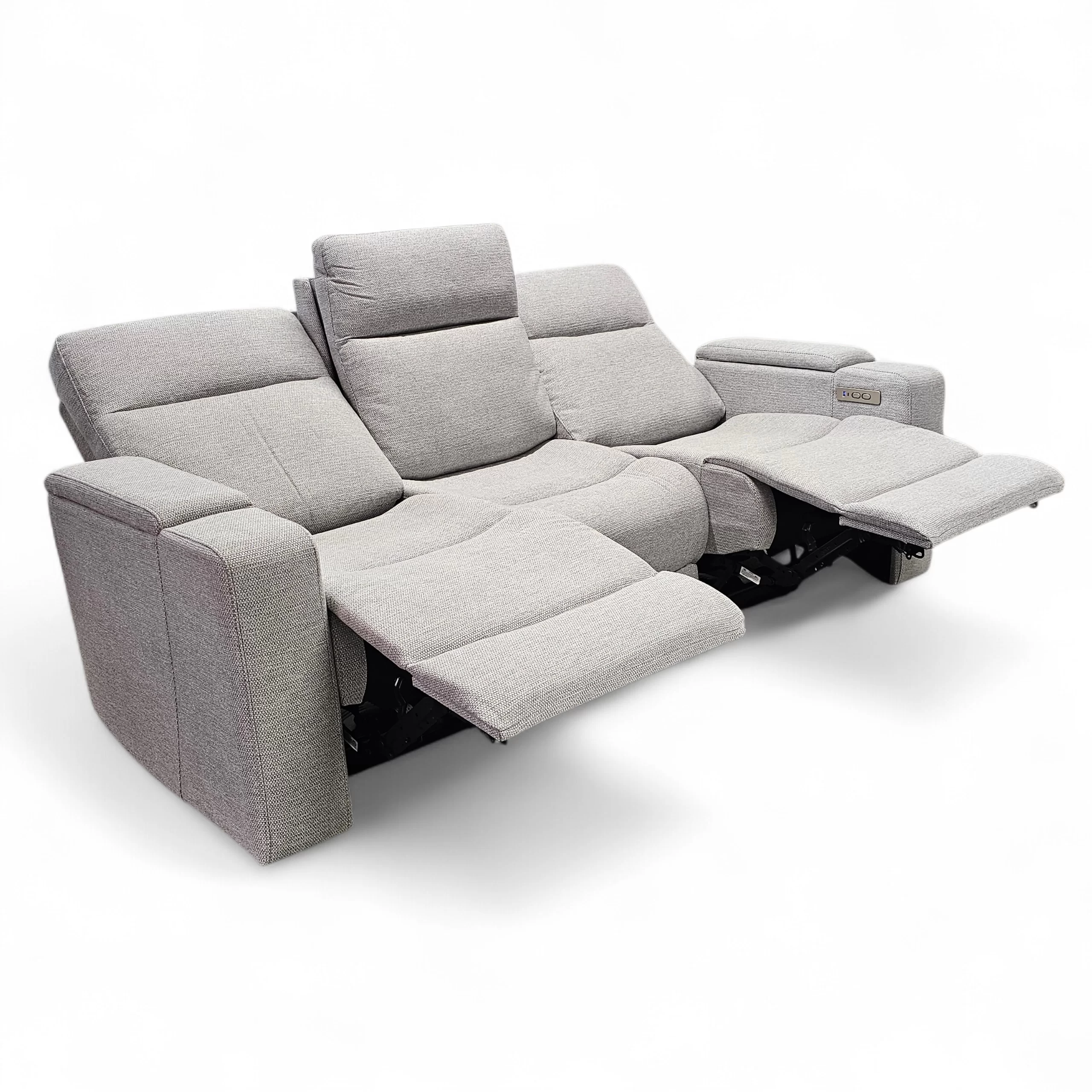Sohvan molemmissa päädyissä on sähkötoiminen recliner-mekanismi, jonka avulla nostat jalat ylös ja kallistat selkänojan täydelliseen lepoasentoon.