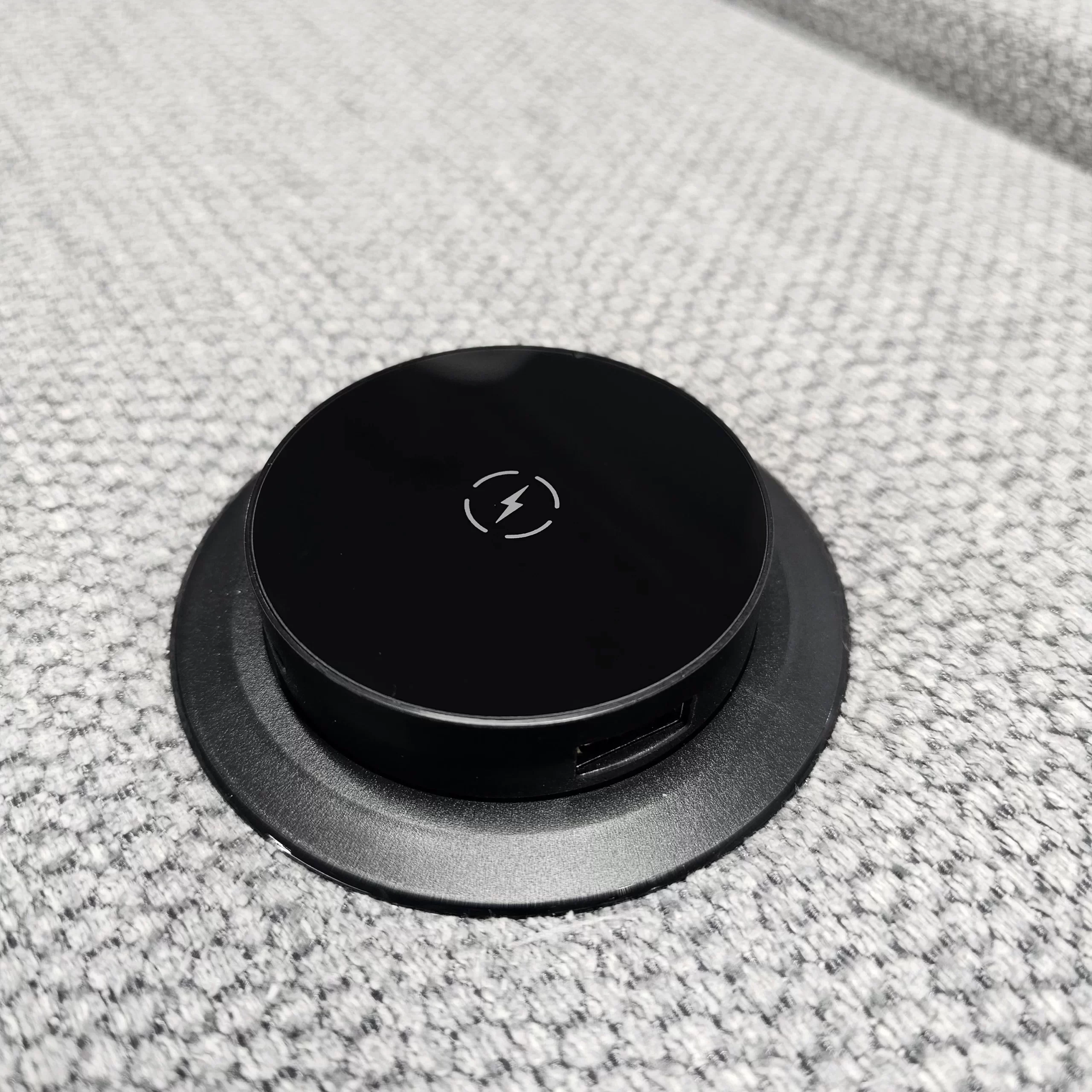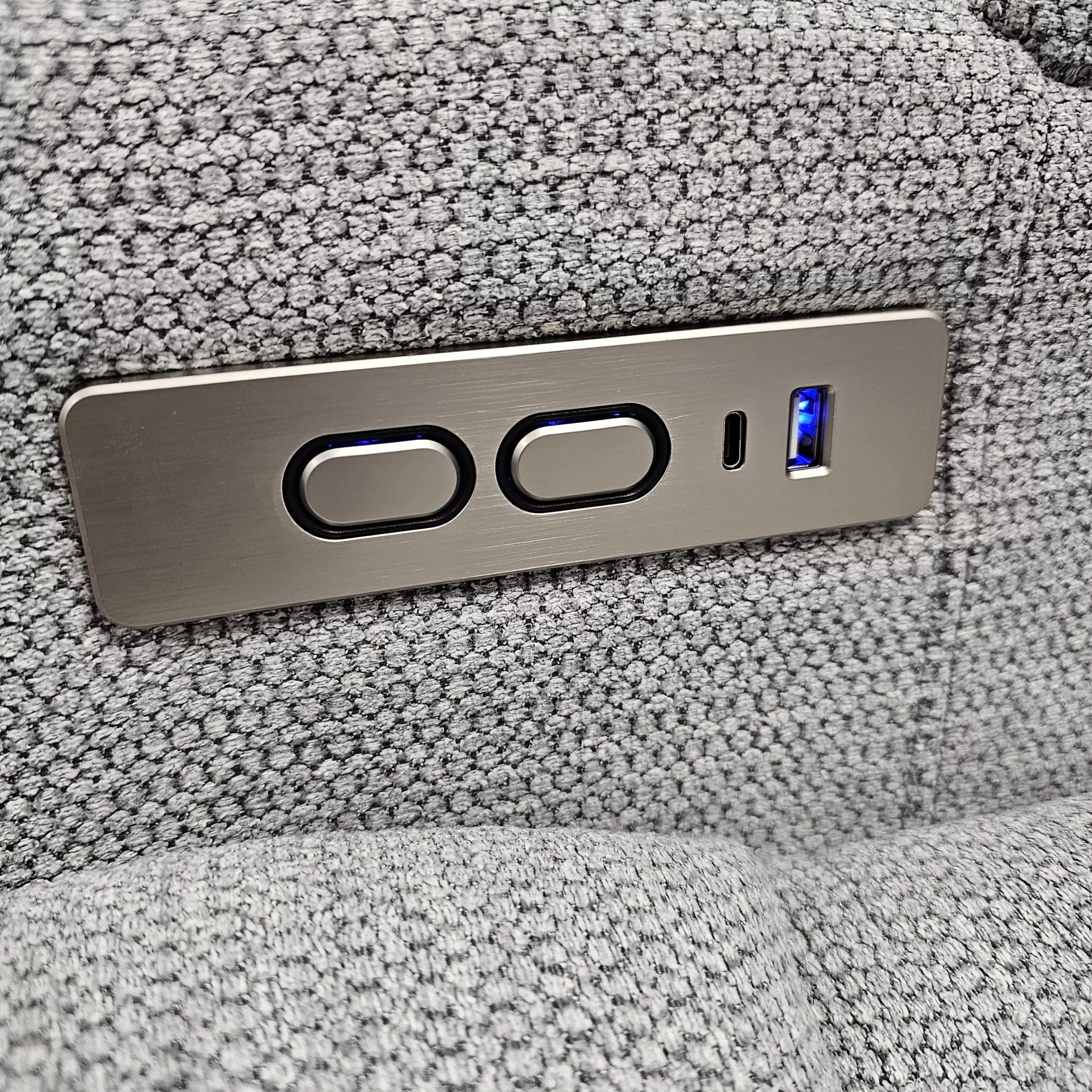 käytännöllisen pöydän, jossa on kaksi mukitelinettä sekä langaton latausasema. Selkänojassa on myös tasku, lehtiä varten.