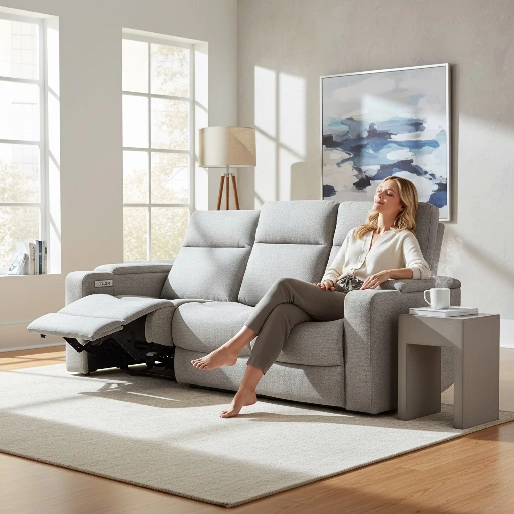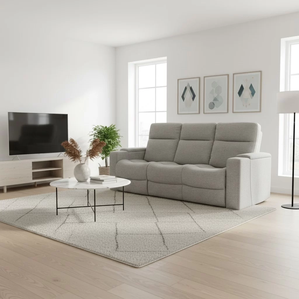 Tämä 3-istuttava recliner-sohva yhdistää mukavuuden ja älykkäät ominaisuudet yhdeksi kokonaisuudeksi.
